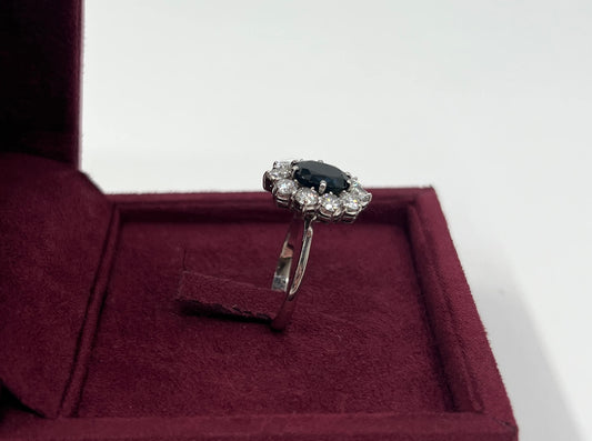 ANELLO IN ORO 18KT BIANCO CON ZAFFIRO E DIAMANTI