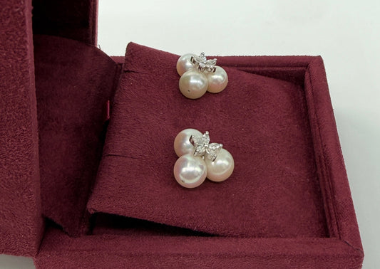COPPIA DI ORECCHINI ORO 18KT BIANCO CON PERLE E DIAMANTI